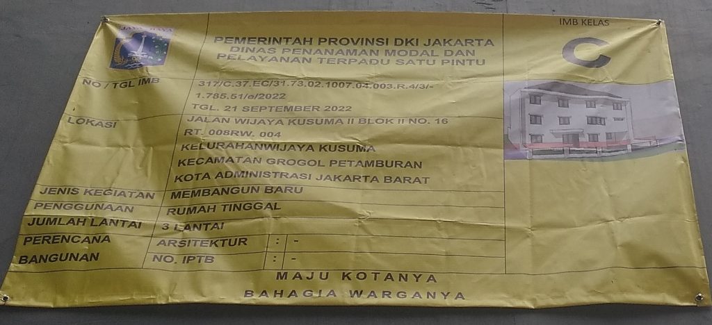 detif.id – Jakarta, Satu unit bangunan gudang 3 lantai menggunakan IMB Rumah Tinggal 3 lantai berlokasi di Jln Wijaya Kusuma II Blok II No. 16 Rt. 008 Rw. 004 Kel. Wijaya Kusuma Kec. Grogol Petamburan Kota Adm Jakarta Barat. Bangunan tidak sesuai IMB tersebut, telah di Segel Hendras Kasatpel Pengawasan Dinas Cipta Karya Sub Sektor Kecamatan Grogol Petamburan Pemko Adm Jakarta Barat.
