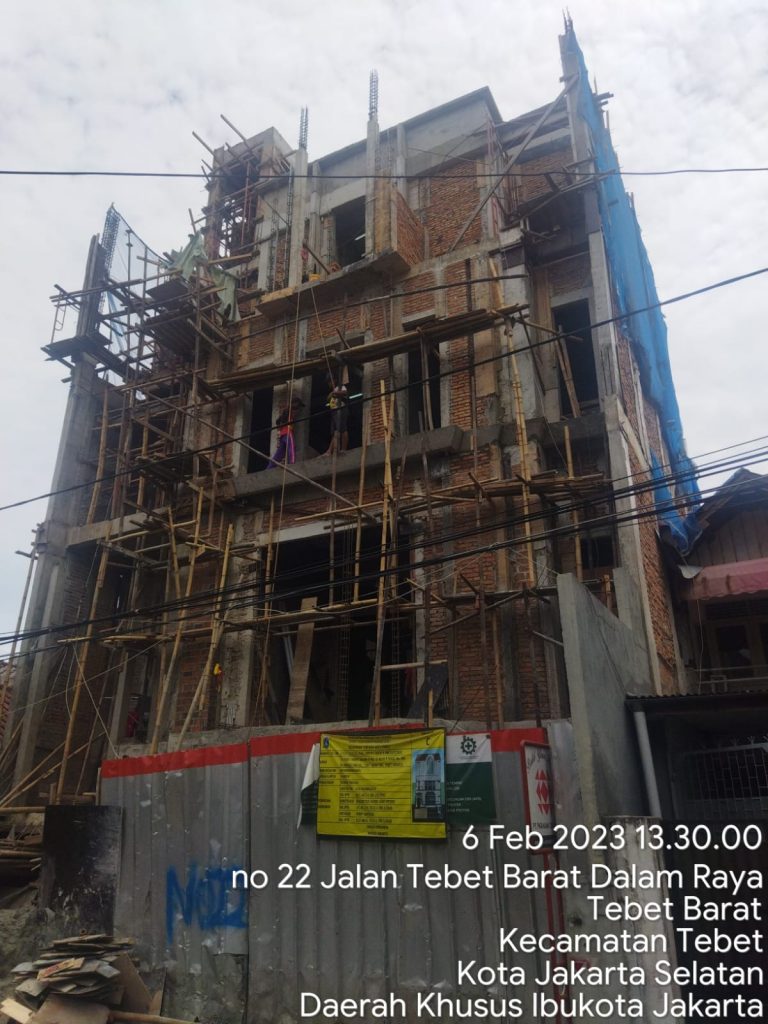 Diantara puluhan bangunan yang tidak sesuai IMB itu ada di Jln. Tebet Barat Dalam IV, No. 22, Blok.R Persil No. 245 RT. 017/ RW. 006, Kelurahan Tebet Barat, Kecamatan Tebet, terlihat sedang dibangun Rumah Tinggal mewah setinggi 4 setengah Lapis. Melihat ketinggian bangunan 4 lantai sebagaimana tertulis di plank kuningnya, timbul kecurigaan atas ketinggian bangunan itu. Alasannya, di plank kuning (IMB) hanya tertulis tahun 2022 tanpa ada tanggal dan bulan diterbitkan IMB nya. Karena Peraturan Gubernur (Pergub) No.31 Tahun 2022 tentang Rencana Detail Tata Ruang Wilayah Perencanaan Provinsi DKI Jakarta itu sendiri diundangkan Tgl 27 Juni 2022. Begitu suatu Pergub diundangkan butuh waktu lebih kurang 4-6 bulan waktu sosialisasi ke masyarakat, yang artinya bangunan yang bernomor IMB 193 itu terbit sekitar bulan oktober 2022 dan diduga kuat hanya 3 lantai saja.